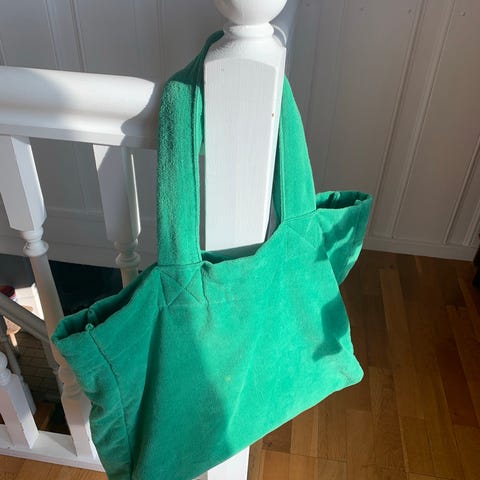 Denne totebagen i 100 % bomull har et stilig print og lange skulderstropper for enkel bæring. Lett, slitesterk og gjenbrukbar – perfekt til hverdags, strandturer eller små ærend. Et allsidig hverdagsplagg med avslappet stil.