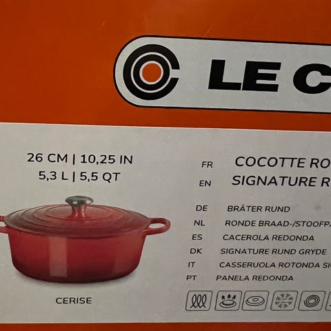 Helt ny Le creuset. Rund gryte støpejern 26cm, 5.3L. NY/UÅPNET!