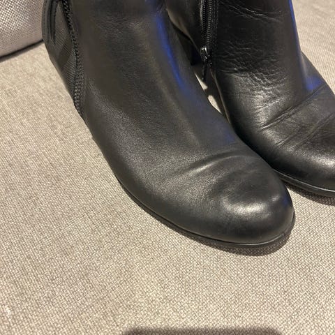 Brukte en gang innendørs. Hælen er 6cm og komfortable å gå i.