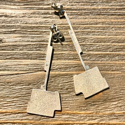 Selges vintage øreringer, store sølvfargede øredobber med lyseglå "perler".