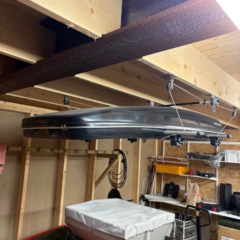 Boksen henger i takoppheng i vår garasje så her er det bare rygge inn med takstativ på så skal jeg være behjelpelig med montering.
