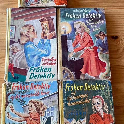8 stk bøker Fröken Detektiv og 4 stk Detektiv Nancy Drew selges.