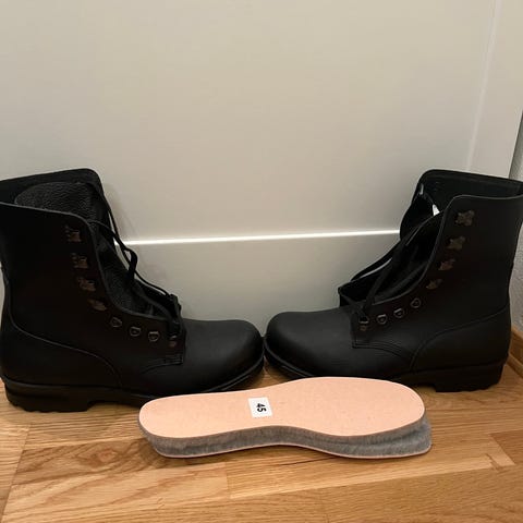 Selger noen gode millitærstøvler i ekte lær. Størrelse 46. 1000,- inkludert frakt.