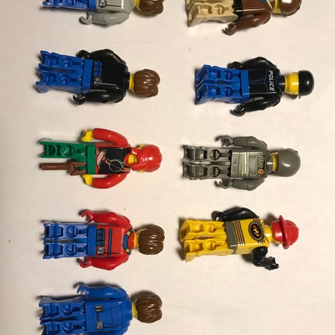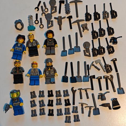 LEGO City minifigurer i ulike varianter. Settet inneholder flere figurer med forskjellige klær og utseender, inkludert politiuniformer og fanger, Passer til LEGO City byggesett og samlinger.