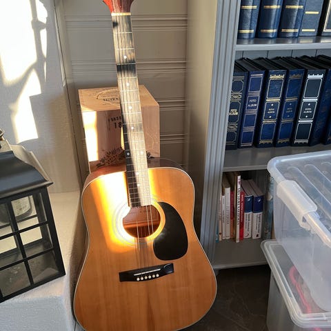 Dette er en gitar med sjel og den har en flott patina.Med krakkeleringer i lakken og det som hører med til en gammel vintage gitar.