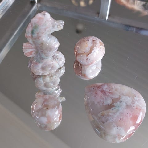 * 2 stk Blomsteragat tromlet stein med forskjellige mønstre