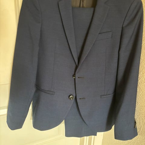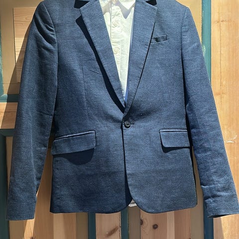 Jakka er i str 170, men passer perfekt til buksa. Ermene er justert (forkortet noe) av skredder👍