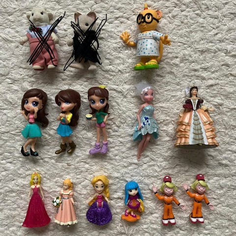 Pent brukte figurer mellom 3/6 cm høye selges samlet kr 50,- pluss porto.