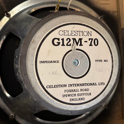 Celestion G12H-150 redback i god stand selges. Høyttaleren beskrives som en creamback, men som tåler mye større belastning. 16 ohm.