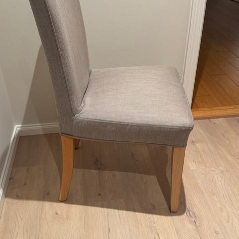 7 spisestoler selges sammen. Grå overtrekk er HENRIKSDAL fra IKEA. Kun vaskes i vaskemaskin. Ikke sikker at stoler er fra IKEA, men ligner veldig på BERGMUND IKEA stoler. Jeg har et ekstra overtrekk til. Sendes ikke, må hentes i Arendal. Pris er for 7 stoler og 8 overtrekk