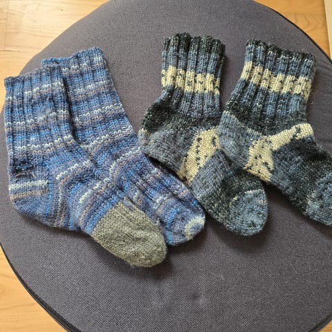Strikkede sokker med snor (ca 11cm)