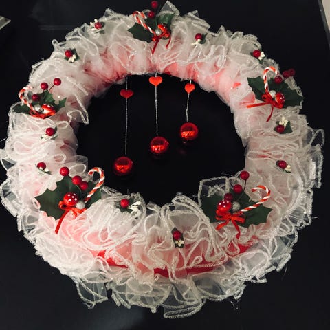 Elegantisk og dekorativ håndlaget julekrans. Vakkert pyntet med gullfargede detaljer. Passer perfekt til dør, vegg eller som juledekor. Klassisk og tidløs – lett å kombinere med annen julepynt.