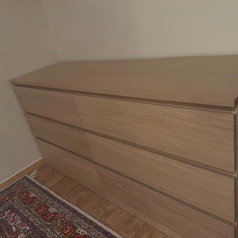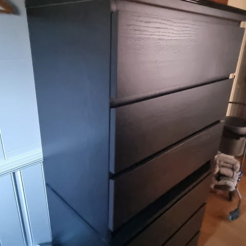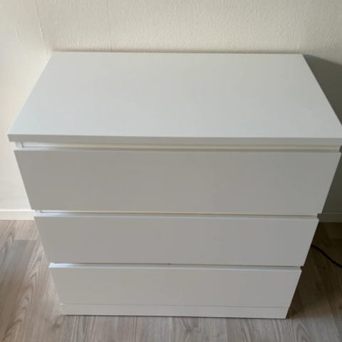 Har to stk store Malm kommoder og to stk små. Den ene store som er avbildet, har ett lite merke, ellers fin stand. Den andre er nesten helt ny. De to små, uten anmerkning.