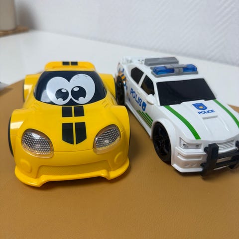 Trafikklys med rødt; gult og grønt lys, batteridrevet, ca 10 cm høyt. Trenger ny batteri