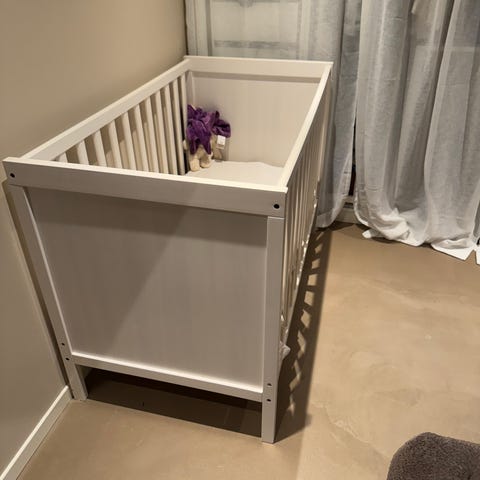 Fint brukt. Trekket kan tas av og vaskes. Selges med madrass