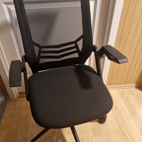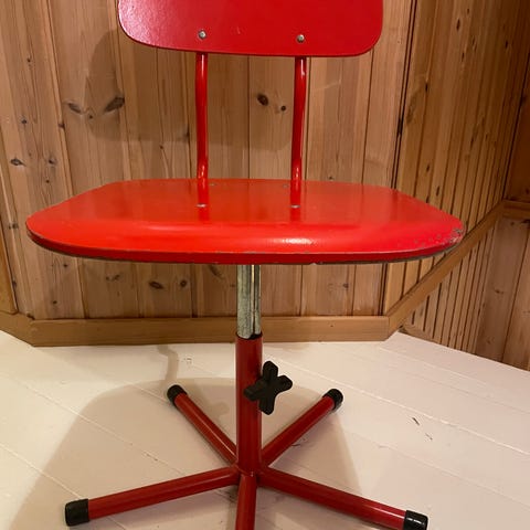 Vintage kontorstol laget av «Norske Industriartikler AS». Justerbar høyde og ryggstøtte.