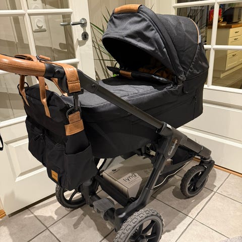 Følger med avtagbart søskenbrett og adapter til Besafe babysete