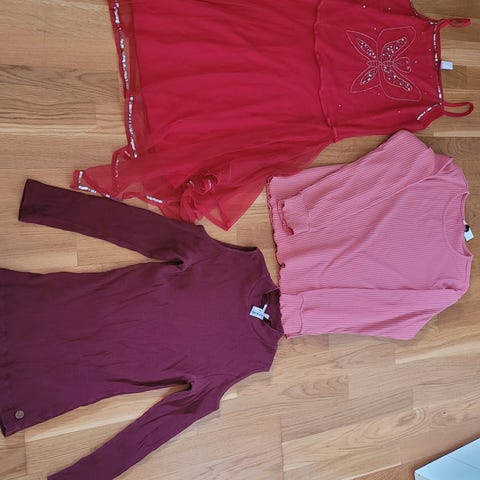 Klær brukt av jente, str 170, xs og s. 2 bukser, 3 gensere og en tubetopp