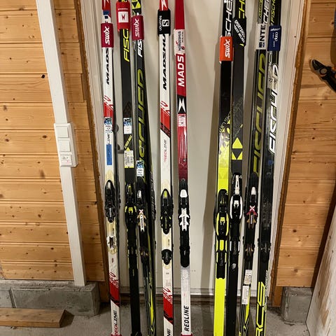 Fischer classic 187 cm - passer til vekt 55 -62 kg, noen riper kan finnes, men brukt mest til konkurranse. Med nåtidens vintre blir det riper ser jeg. Selges kr 1500,-