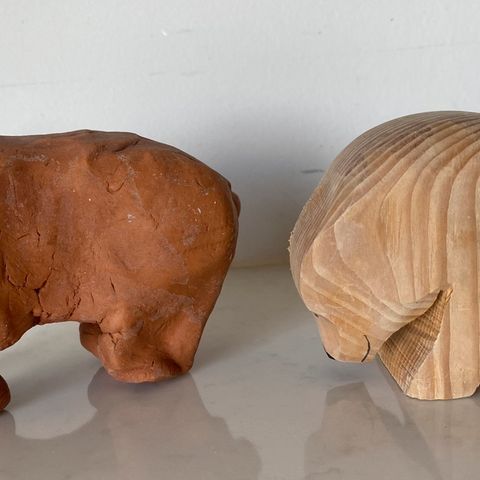 Stor bjørnefigur, ca 17 cm høy og 7 cm på det bredeste. Figuren er naturtro, og laget av en type hard plastikk. Den er uten skader, men vet ikke alder. Finner ikke stempel eller navn på produsent. Egner seg best som pyntegjenstand.