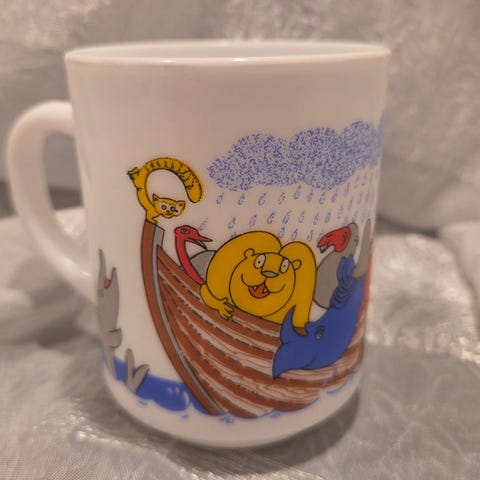 søkeord: kjøkken kjøkkenutstyr utstyr samler samle samlerobjekt samleobjekt samling mug melkeglass melk glass opalin noa båt klovn motiv barnekopp barneservise vintage retro kitch kitsch 70tallet 70- tallet 70 tallet 1970- tallet 70s 1970s kaffekopp tekopp krus kopp kaffe te hvit kvitt kvit white jul julegave gavetips julegavetips julepresang presang gaver julegaver