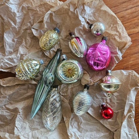 Julepynt munnblåst glass i form av kongler 1900-1950 fra Tyskland