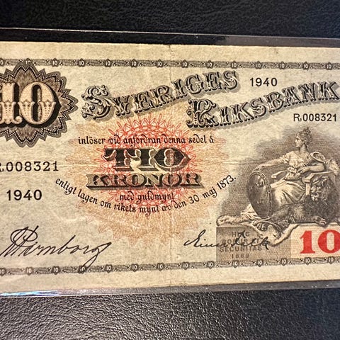 10 kronor seddel Sverige 1952,-USIRKULERT kvalitet- (4173 BU )