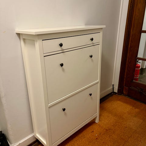 Brukt skoskap selges. Brukt i tre år, men står nå bare i boden og trenger et nytt hjem☺️ Skoskapet er i god stand, men har et par bruksmerker (se de to siste bildene). Et slankt og pent skoskap som tar lite plass. Må hentes i Bergen.