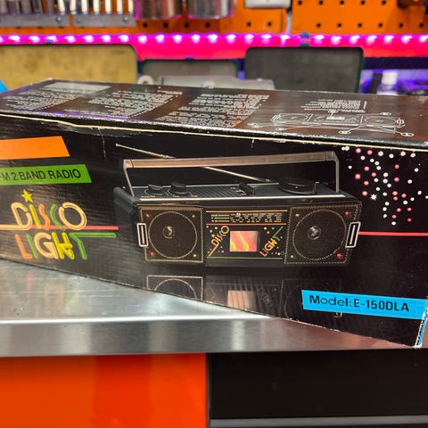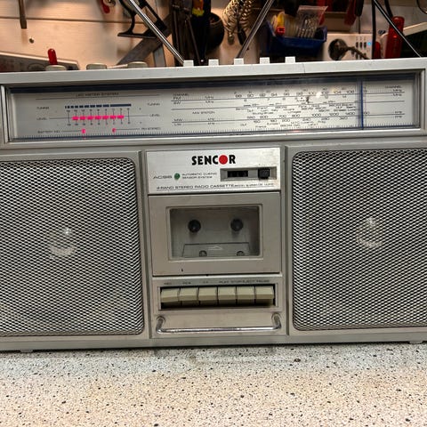 Ghettoblaster, stereo radio med kassettspiller. Avtagbare høytalere.