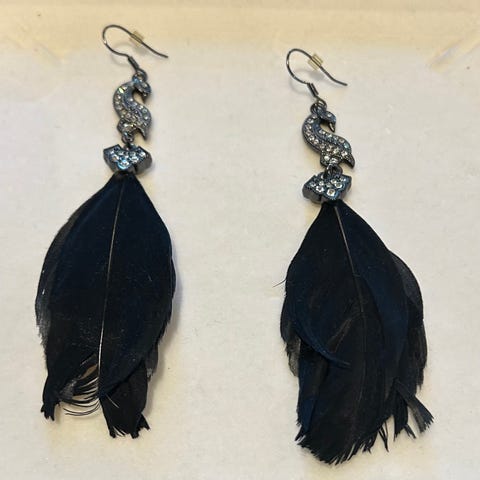 Selges som NY øredobber med påfugl design og svarte steiner/ strass.