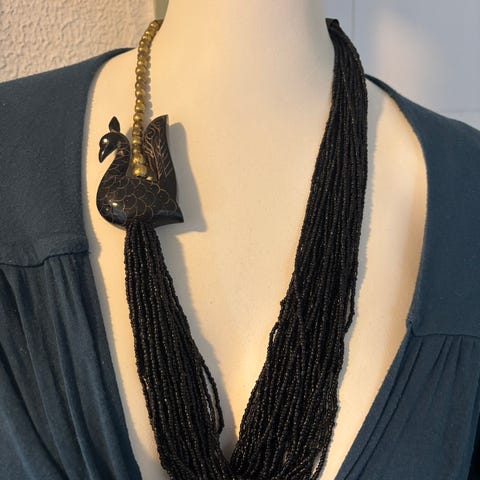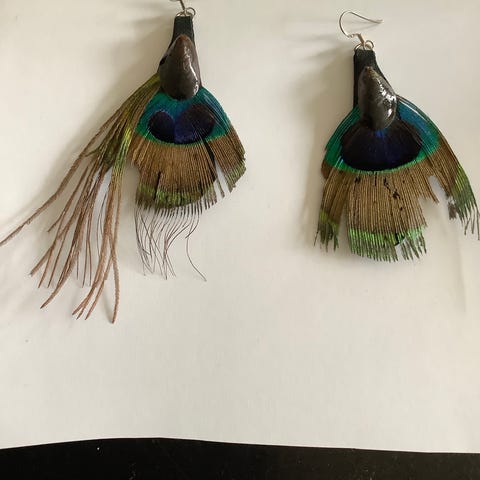 Nydelig øredobber/ ørepynt med påfugl og svarte steiner
