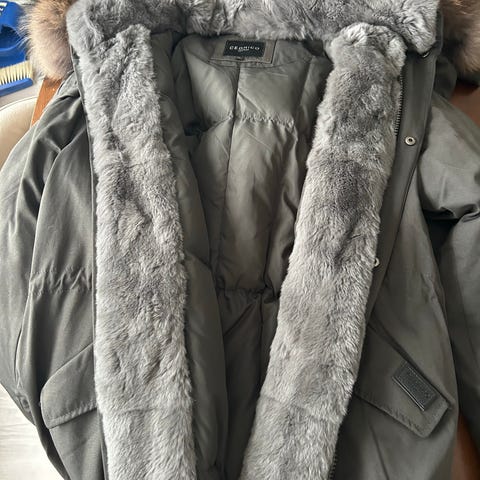 Olivengrønn Cedrico Monet jakke med ekte pels. Pent og lite brukt, men har to små hull på den ene armen. Pelsen på hetten kan tas av🤗