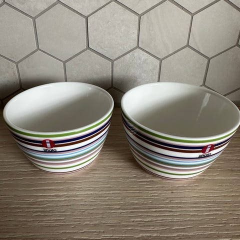 2.Morsomme ovale krus til å nyte kakao i. De måler ca 10x7x7cm. Pent brukt. Pris er samlet.
