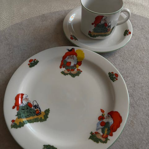 Den ene asjetten har noen mørke merker som ikke går bort i vask. Kan hentes i Tromsø