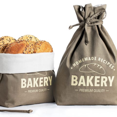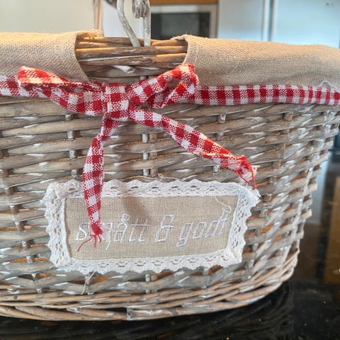 Flettet brødkurv med en lys tøyliner sydd med ordet "Toast", fra KID