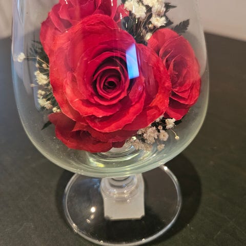 Glassbeholderen er 18 cm høy, diameter er også 18 cm.