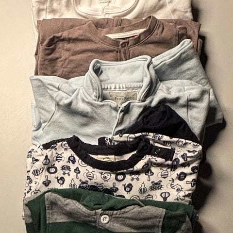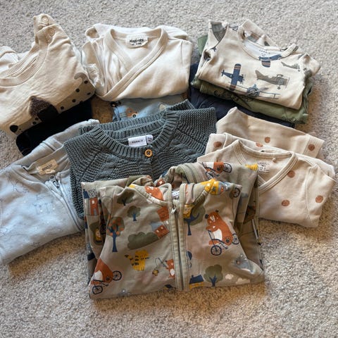 Sokker til baby. De fleste ubrukte. Farger: hvit, blå og beige. Fra 0-1 år.