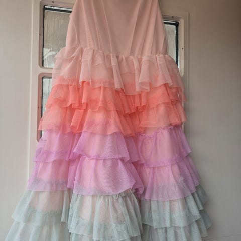 Fint brukt. Liten rift i tyllet som enkelt kan sys.