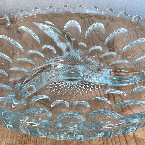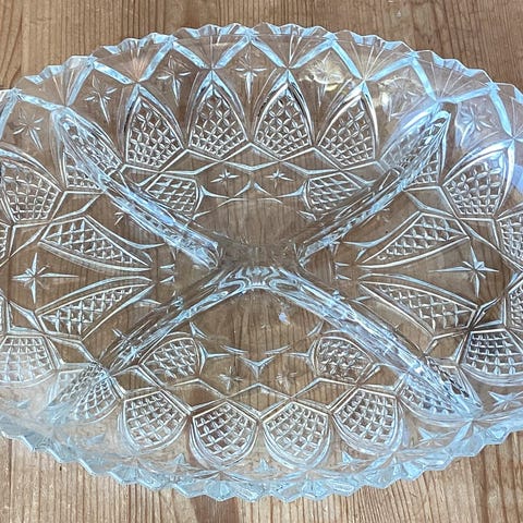 1 MEGET FLOTT RUNDT 3-DELT glass fat, diameter 18,5 cm, høyde 3,7 cm og 3,5 cm. Veier 575 gram. Fremstår SOM NYTT! Se alle bildene fra mange forskjellige sider. Fatet kan sendes, eller hentes her i Sandefjord, eller avtale henting i Tønsberg på Tolvsrød. Kan også sende med helthjem, koster kr. 82,-, inntil 5 kg! Forsikret og med sporing.