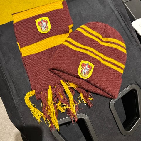 Stilig Harr Potter Skjerf med finger-vanter som man kan endre til votter. Harry Potter symbol på alle delene.