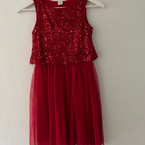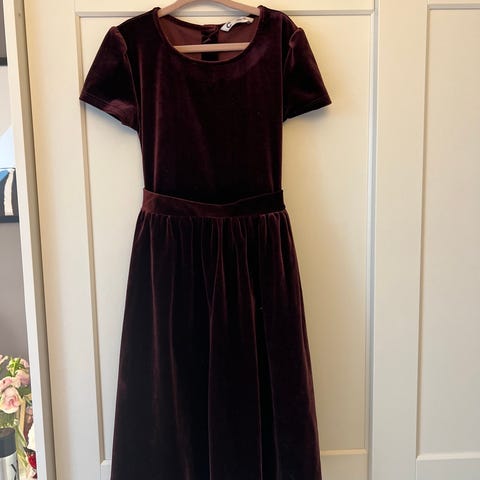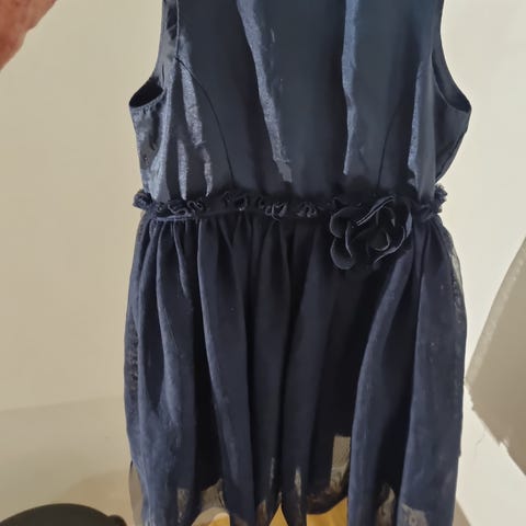 Flott selskapskjole i blå fløyel og tyll. Størrelse 7 år.