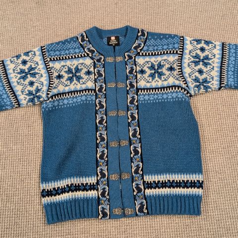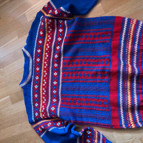 Mariusgenser med en personlig vri. Snøkrystall.Ny og håndstrikket i viking superwash str L. Mål hel lengde 64 cm. Overvidde 110 cm. Armlengde 52 cm. Kr 1800. Kan sende mot porto. Ligger på flere sider. Har tillatelse til å selge Mariusstrikk
