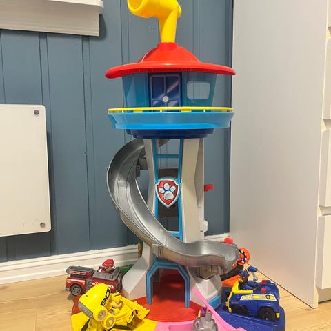 Paw Patrol utkikkstårn, Paw Patroler og ubåt. Inkluderer mange kjøretøy, figurer og tilbehør. Pent brukt.