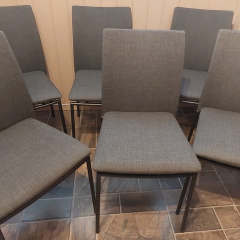 6 stk pent brukte Axel Jærstol selges. Nytt setetrekk på alle stoler. Selges for 1700 kr pr stk.