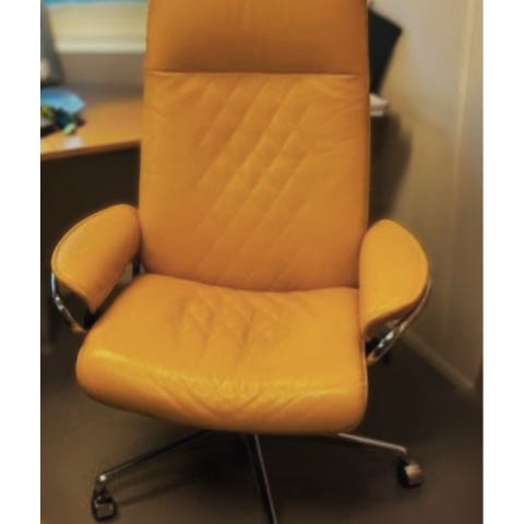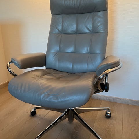 Vurderer salg av min stressless magic kontorstol i grå farget skinn. Meeeget godt å sitte i, god stand på den, knirker litt i understellet men påvirker ikke funksjoner eller komforten.