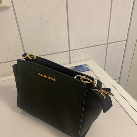 Michael Kors dameveske laget av kunstlær i svart farge. Vesken har to skulderstropper og flere innvendige lommer, inkludert en med glidelås.