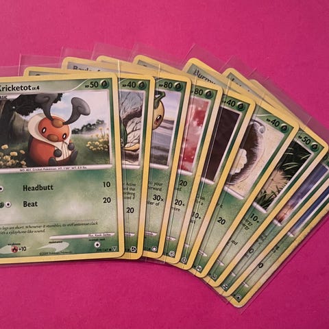 Selger LP og NM kort fra World Championship i 2023. Noen få kort har fått litt røffere behandling. Bunkene til venstre er trainerkort alle sammen. 35 stk.