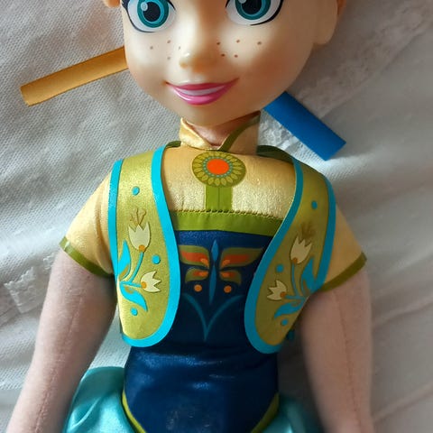 Disney Elsa dukker med blå kjoler og blonde fletter, inkludert små Olaf figurer. Dukker er barneleker basert på karakteren Elsa fra Frost-serien.