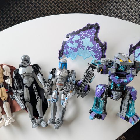 Selger en blandet LEGO-samling med kjente serier som Ninjago, Nexo Knights, Batman( kun en robot fra ett sett) og Techno LEGO.