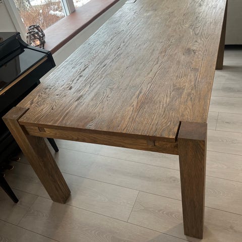 Flott stort bord, blir som nytt etter en runde med pussemaskin og olje, eller fint som det er.